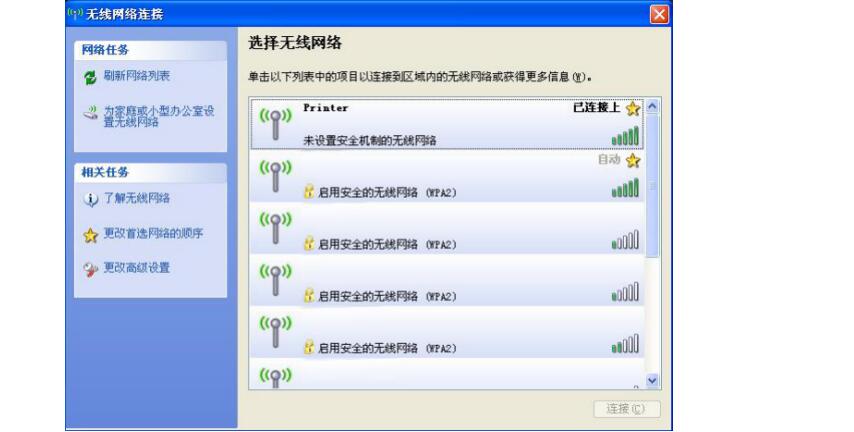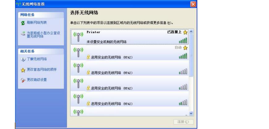 ②搜索当前无线网络,查找到“Printer”打印机设备,点击“连接”连接到打印机;