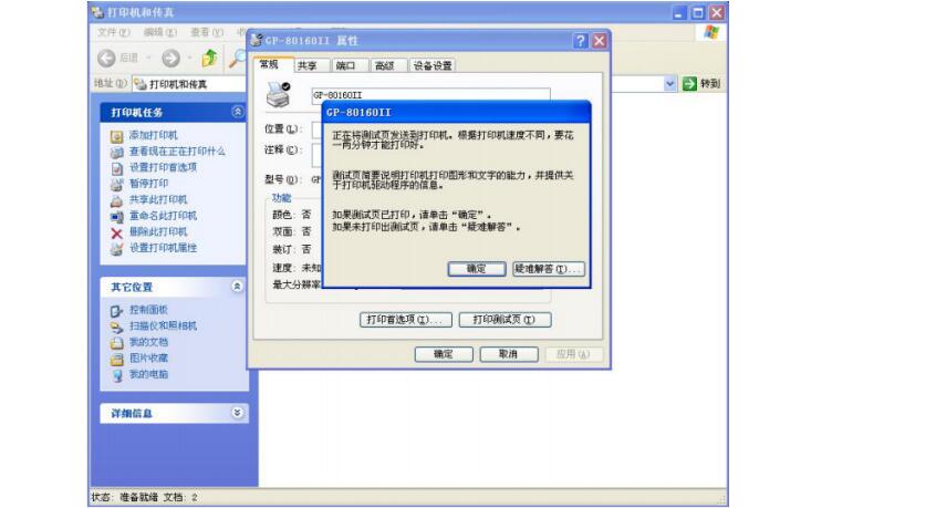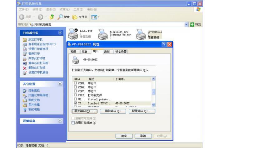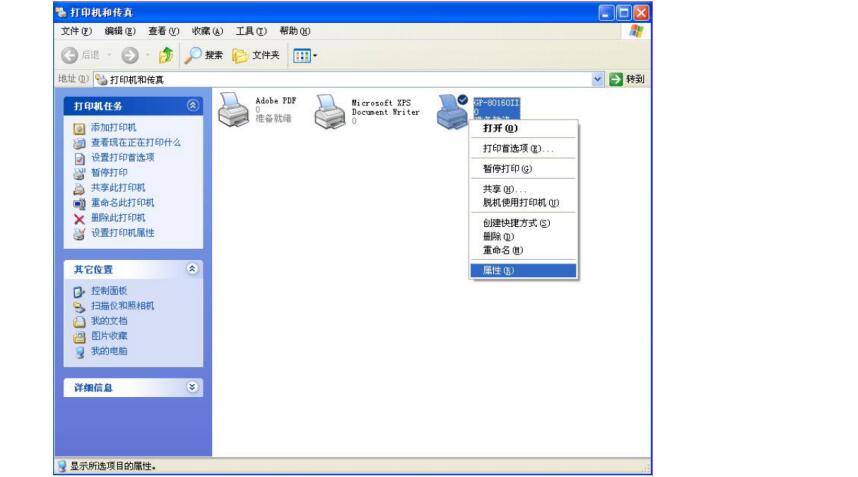 ③我的电脑-控制面板-打印机和传真,找到已经安装好的GP-80160ll打印机驱动程序,点击选择“属性”;