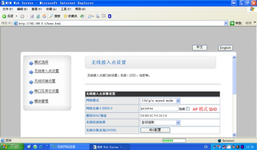 ③点击“无线接入点(AP)”,按照下图设置AP模式下的配置信息,然后点击确定;