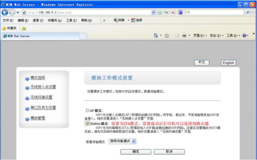 ④点击“模式选择”,选择“Station模式”,然后点击“确定”;
