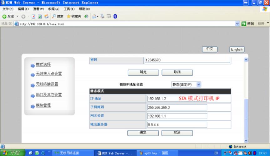 A. STA模式下打印机的 IP必须和您的路由器IP在用一个网段,并确定IP地址不要和其他电脑IP冲突;