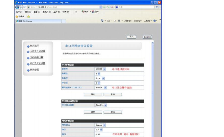 WIFI protocol:TCP,server,9100,192.168.0.1【服务器属性】