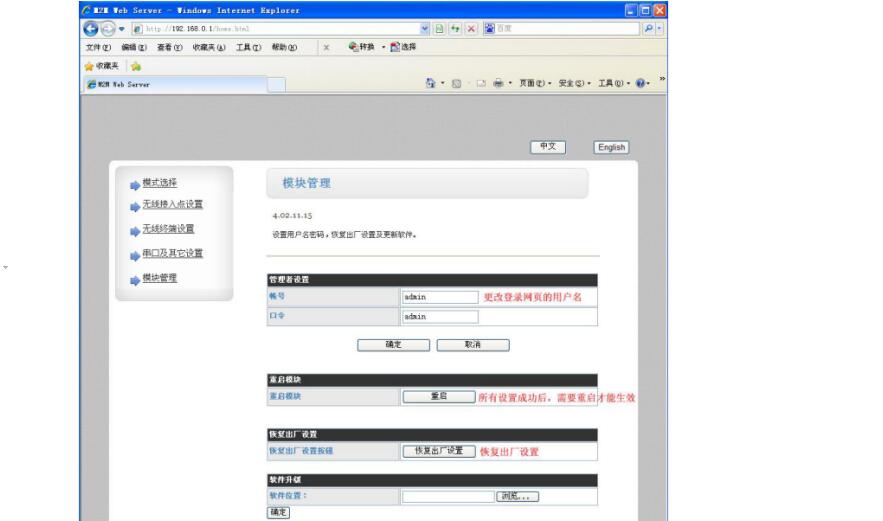 ⑦点击“模块管理”,点击“重启”,然后在重启打印机,这样打印机每次开机就会自动搜寻连接到路由器了;
