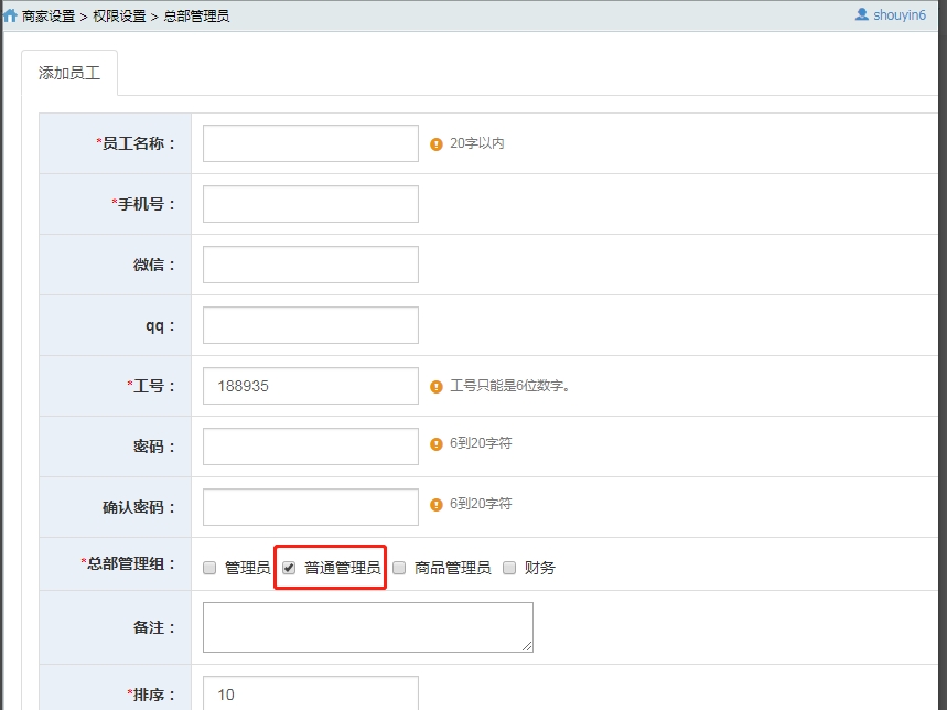 设置员工管理店铺的权限